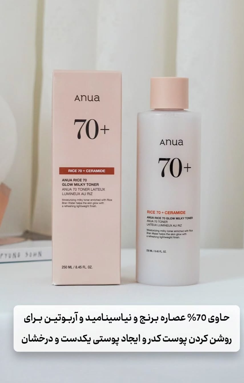 این تونر سبک و بدون عطر،با ۷۰٪ آب سبوس برنج و نیاسینامید غنی شده، که به یکدست شدن رنگ پوست و کنترل چربی کمک میکنه.