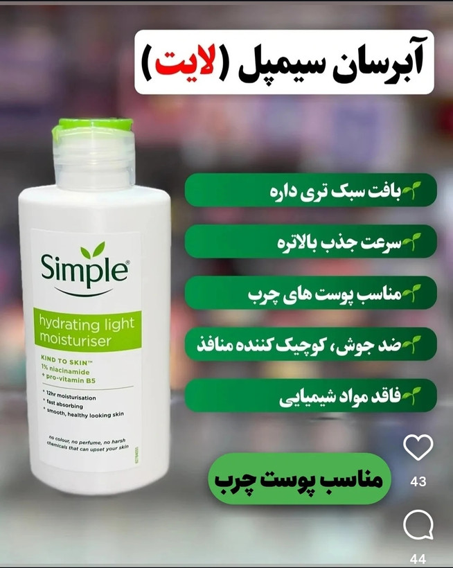 آبرسان سیمپل لایت مناسب پوست مختلط و چرب✨