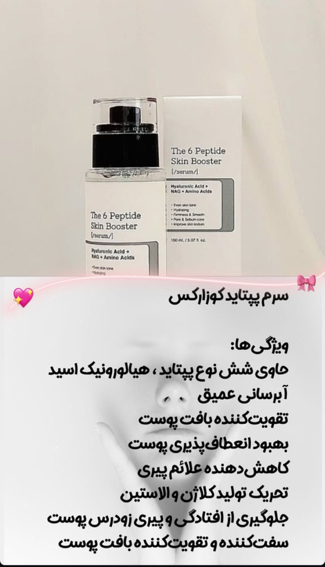 این سرم ۶ تا پپتاید فعال + نیاسینامید+ مرطوب کننده ها داره😍