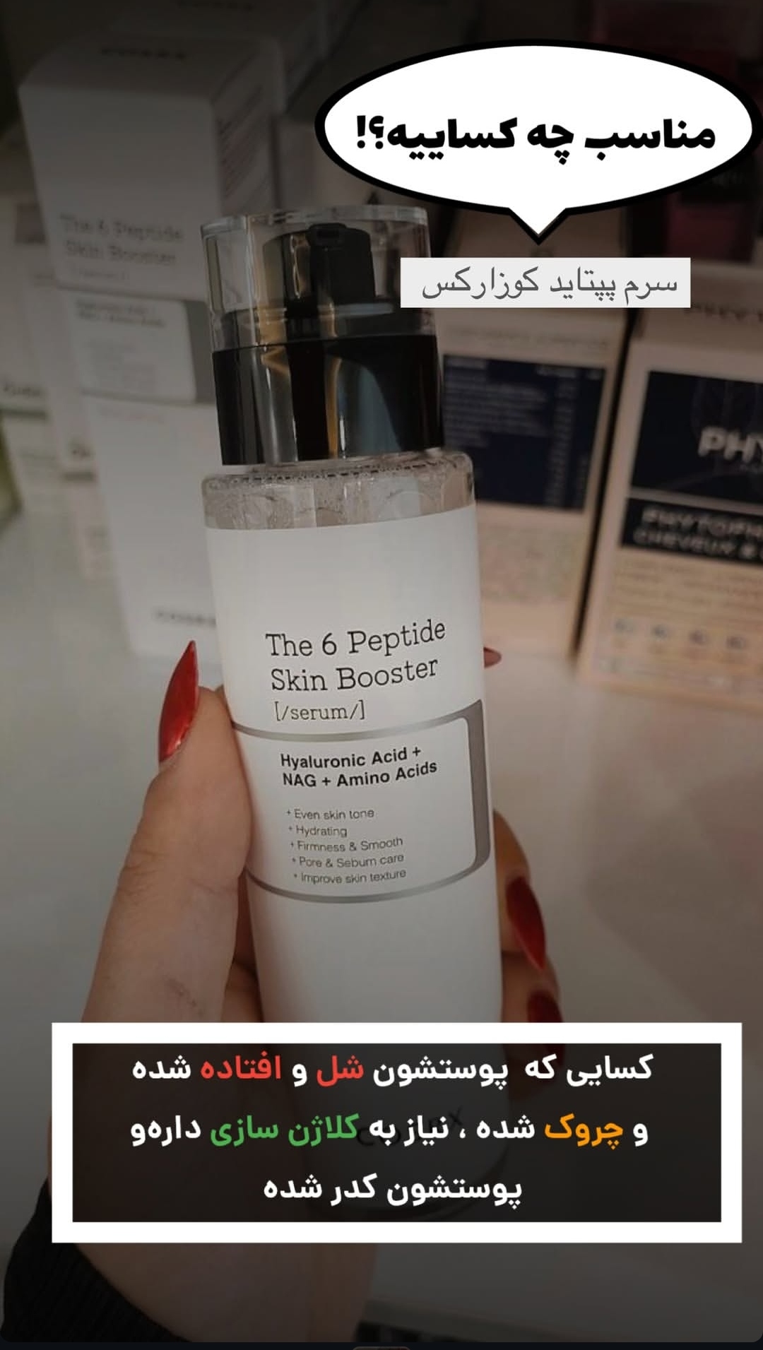این سرم ۶ تا پپتاید فعال + نیاسینامید+ مرطوب کننده ها داره😍