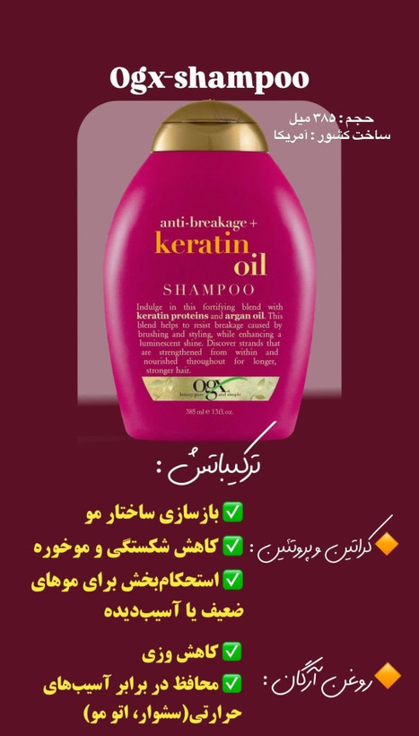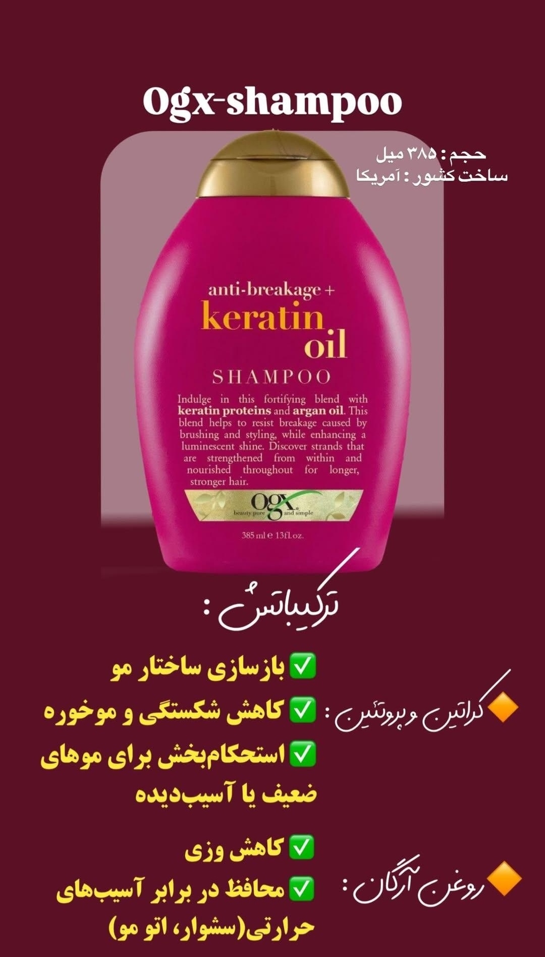 شامپو ogxمحصول کشورفرانسه ،تمام محصولات این برند فری سولفات هستند وتنوع زیاد برای ویژگی های مختلف مو دارن